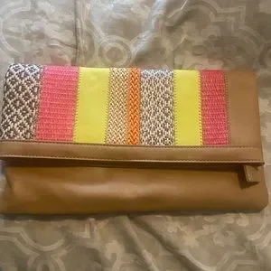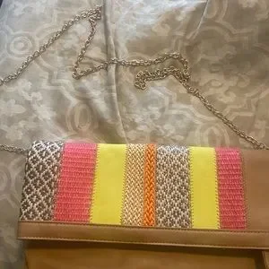 This is a great spring/ summer clutch that was used once for a wedding and was stored ever since. Comes with beautiful metal shoulder chain.