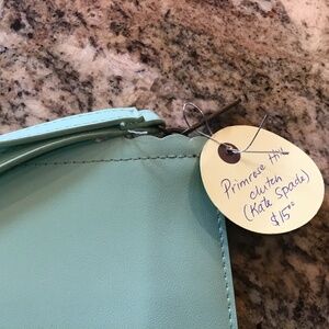 Pale green zippered clutch. Primrose Hill by Kate Spade. Feminine frill on edge.
