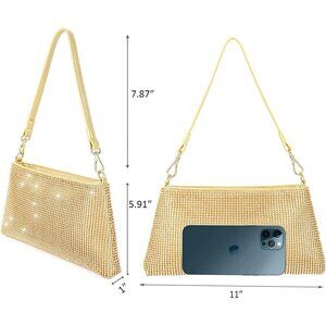 ROOMY SIZE- Valleycomfy rhinestone clutch purses size is 11''(L) *5.91"(H), Handle Drop 7.87", Chain Strap drop 24", it has enough space to carry your cell phone, lipstick, credit cards, key or other small stuffs. this clutch handbag also can be used as shoulder bag, cross-body bag