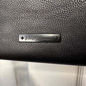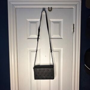 Betsey Johnson black skulls, crossbody, clutch style purse. The strap always had a little twits to it, could never get it to lay flat.