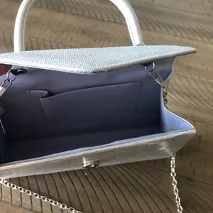 Silver purse with strap. Used only for a few hours on my wedding day. Perfect condition.