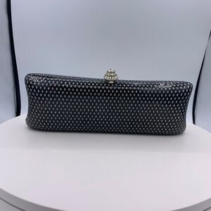 Glamourous hard or clamshell evening purse, bag, clutch in elegant black with sparkling silver touches to catch the light and the eye. Elegant and sophisticated to complete your evening look. In excellent used condition with no damage or wear detected. No chain included but does have loops to accommodate one. Pair with your best evening wear for a polished look then add some accessories from our Closet (some suggestions shown all listed and priced separately) to complete . Fresh and Fabulous from Lemon Squeezy Shop🍋