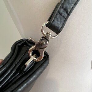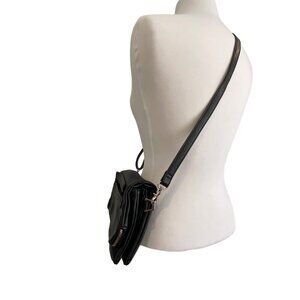 This black crossbody bag offers both style and functionality. Its adjustable strap ensures a comfortable fit, while multiple compartments provide organized storage.