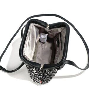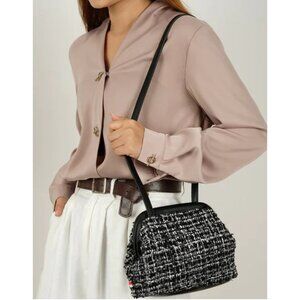 -Detail : Frame closure, adjustable crossbody strap, interior zipper pocket