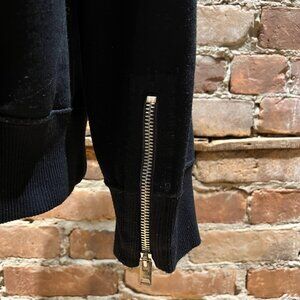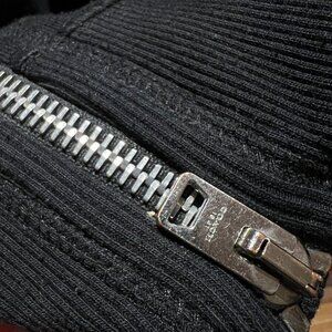 Ribbed cuffs with polished metal zippers