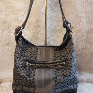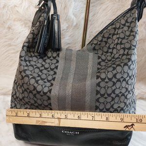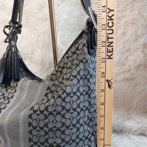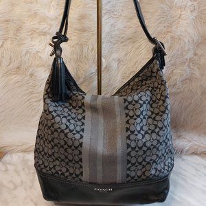 Coach 19918 Lexy Classic Black Signature Canvas Leather Tassel Shoulder Purse