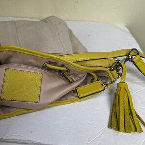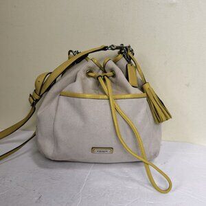 Coach AVERY Bucket Shoulder Bag Canvas Leather Drawstring Neutral Green Yellow