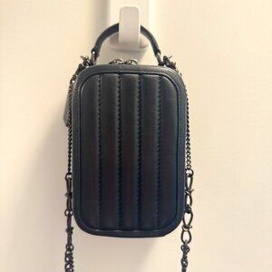 Perfect condition authentic Coach Alie Camera Bag in Quilted Black Leather. Zero scratches, marks, dirt because I rarely used it. Fits my iPhone 15 Pro with wiggle room.