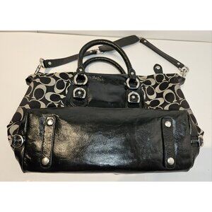 • Coach Ashley Signature Black Silver Large Satchel Handbag Shoulder Bag F15443