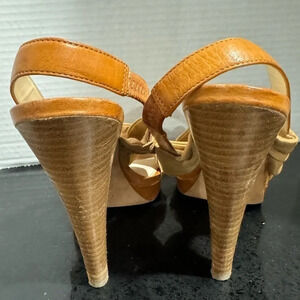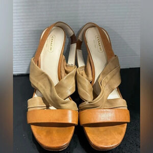 Coach Astor tan brown Leather Strappy Platform Heel slingback wedding party US8