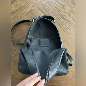 Coach Backpack. Been well used. Some markings and stains as shown in photos. Thread pulls as shown in photos. Black spots removed as shown in photos. Great quality. Hasn’t been worn in years. Coach.