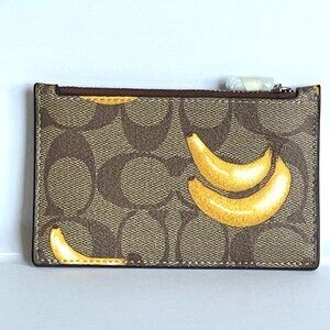 Coach Banana Print Zip Card Case Leather Brown Wallet CR410 Signature Canvas