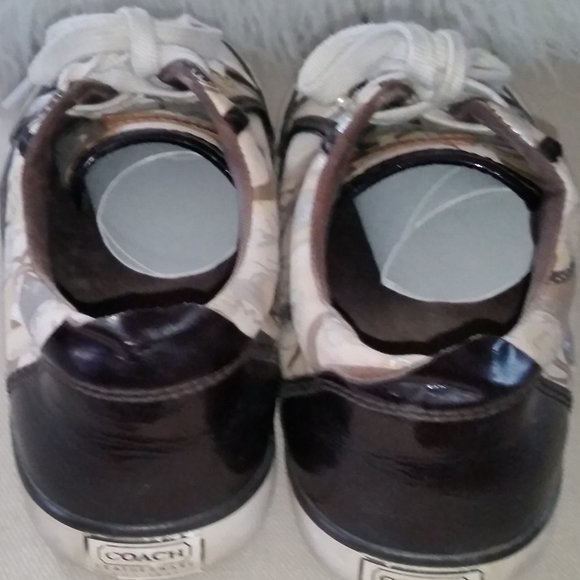 Coach Barrett Poppy Pop C khaki brown wi/multi silver sneakers. Leather brown trim and at back heel. Size 8 1/2 B Very good pre-loved condition.