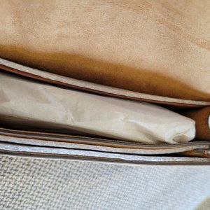 NWT Mixed Leather Beat Clutch Crossbody in Blush Natural Multi Color.