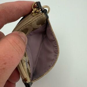 Coach Beige Brown Signature C Jacquard Canvas Key Coin Pouch Leather Trim