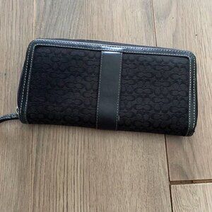 Coach Black Canvas & Leather Logo Wallet with full zipper and coin pouch. Exterior in excellent condition with minor wear in part of the exterior (as pictured). Great closet staple & perfect for spring!