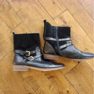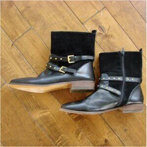 Coach Black Moto Suede Leather Boots Lilliana Gold Studs Hardware ~ Size 11 B ~ I can't find the fabric tag but probably suede and leather (as Coach shoes/boots are)