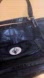 Stylish black patent leather with silver accents. Features a front pocket and spacious interior. Perfect for daily use.