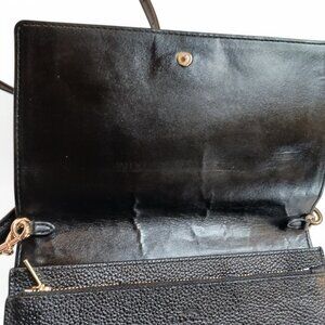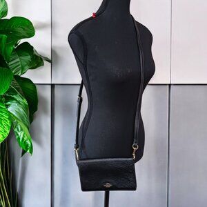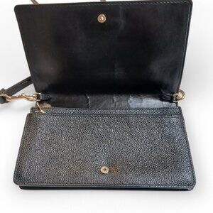 Coach Black Pebbled Leather Fold Over Wallet 3 way Clutch/ Crossbody