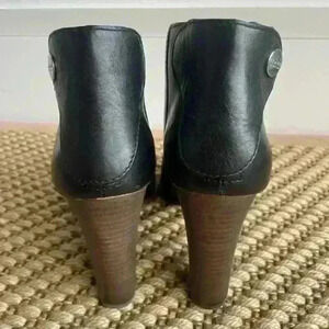 Coach Black Polished calf leather open toe bootie Ankle Zip close size 8