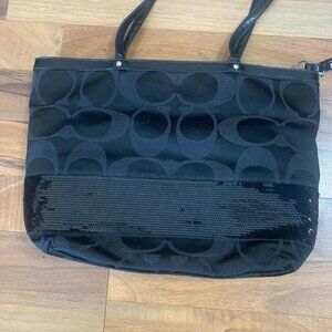Gently used coach bag. Very cute with the sequin detail across the bottom,
