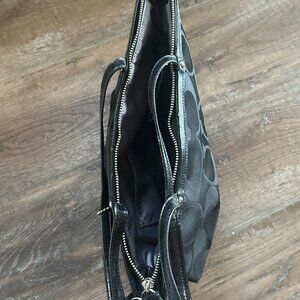 Coach Black Sequin Shiny Logo Duffle Tote Shoulder Bag Signature C Monogram