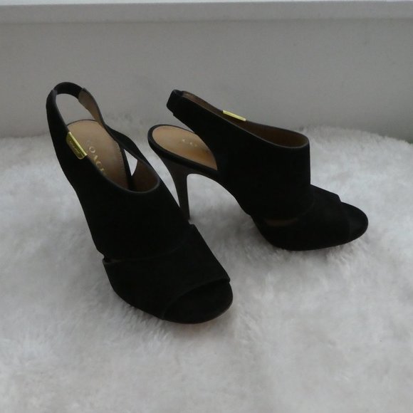 Coach Black Suede Peep Toe Slingbacks - Heels - Stiletto - Lanora - Bootie