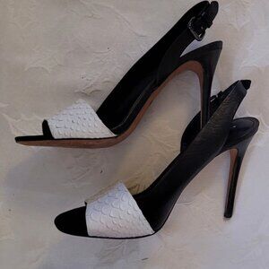 🌹Coach Black White Gladis Vit Smale May Calf Leather Slingback Heels