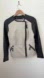 This supple leather jacket features zip pockets with leather pull tabs, zip cuffs and a zip closure with leather pull tabs. Colour block, the cream fabric is 100% cotton that is treated with polyurethane. 2 back zips in the back. Just stunning!