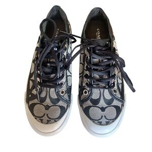 Chic Coach sneakers featuring the iconic signature pattern with a lace-up design for a comfortable fit.