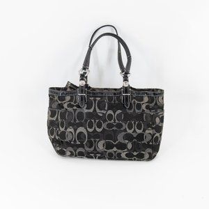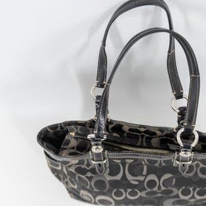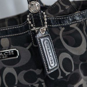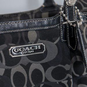 Coach Black/Silver Jacquard Signature Logo Zip Top Handbag Purse F1072