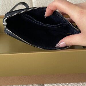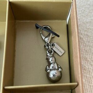 This cute and festive authentic Coach wristlet is perfect for the holidays. Wristlet is navy with blue snowflakes and snowman prints. Comes with two Coach charms that can be paired with the wristlet or any other bags of your choosing. Items are new and will be come in the box.