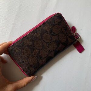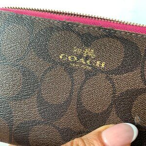 Authentic Coach Brown & Pink Canvas Double Zip Phone Wallet. 👜