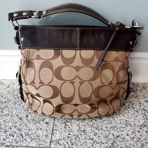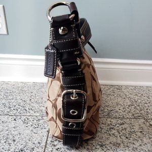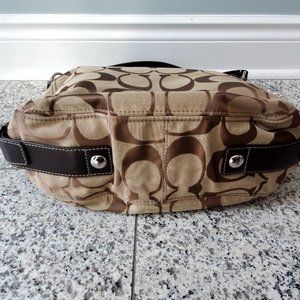 Coach Brown Signature Logo Jacquard Canvas & Leather Shoulder Bag