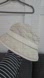 This hot was maybe worn once. it is a quilted bucket hat with a leather trim it measures about 24 in circumference following the leather trim on the outside it is tagged as a size small.