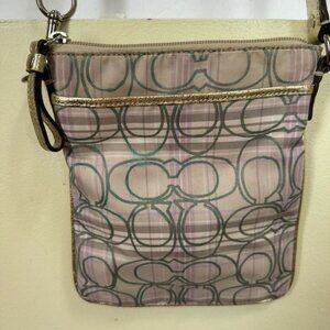 Coach CC Small Crossbody Shoulder Bag Fabric Check Metallic Leather Zipper Pocket