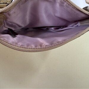 Cute small bag from coach made from fabric with leather trim and fabric adjustable strap.