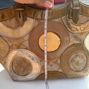 Y2K metallic glam! This Coach Carly Patchwork Tote features bold gold and silver circles in a playful Y2K-inspired design. Great condition — gently used and ready to carry all your essentials in style.