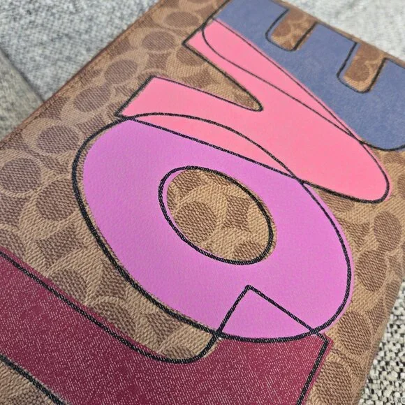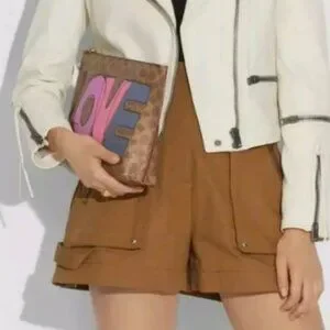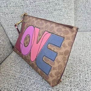 Coach Charlie Pouch In Signature Canvas With Love Print Brass Tan Bag.