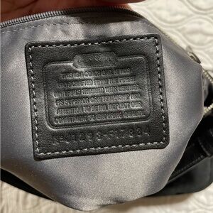 This beautiful black canvas hobo shoulder bag from Coach is the perfect accessory for any occasion. With its medium size it can hold all your essentials while still looking stylish. The bag features a zip closure with silver hardware, and a shoulder strap .The Coach Chelsea logo accents the bag, giving it a touch of elegance.