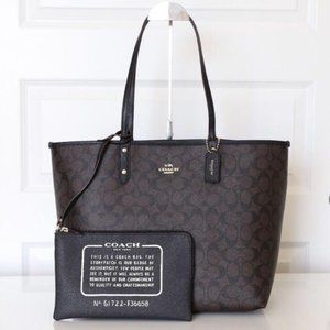 Coach City Tote In Signature Canvas and Black Reversible With Pouch
