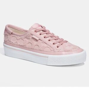 Pink ‘Citysole’ sneakers from Coach. Made of leather and fabric, this model showcases the brand's ‘C’ monogram pattern in fleece, a logo patch and a white rubber sole at the base.