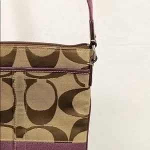 Classic design, purple stripe and strap. 7in x 9in. Good condition, no defects