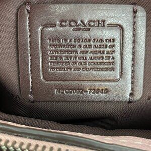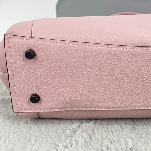 Coach Dalton 31 Shoulder Bag Aurora Pink, Spotless inside & out, like new, with factory plastic on zip pull & side hardware as pictured. Features polished pebble leather, dbl handle straps, snap closure, brown logo fabric lining, hanging "C" bag charm, leather COACH hang tag, footed base, gunmetal hardware, spacious open interior center zip compartment, side compartments with wall pockets + zip pocket. Measurements: 13 1/2" L x 10 3/4" H x 5 1/2" W. shoulder strap drop: 9".