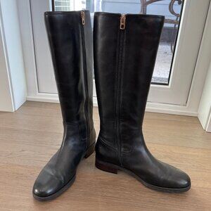 Coach Easton Sleek Knee High Leather Boots w Gold Buckle Hardware Black Sz 9.5