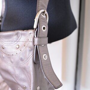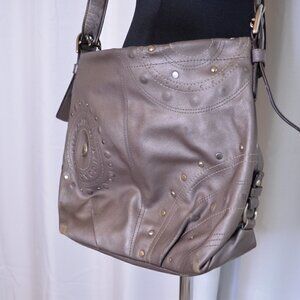 Coach F16178 Gunmetal Metallic Crossbody Leather Slouchy Purse with Studs