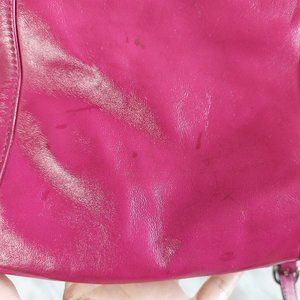 Check out this Coach F23901 Pink Daisy Leather Mia Leather Crossbody Bag in pre-owned condition, the bag has some stains and water mark on the bag, the lining has some stains but no rips on it, this bag is very handy perfect for many occasion.