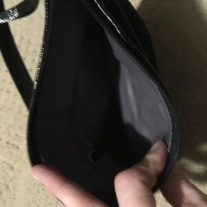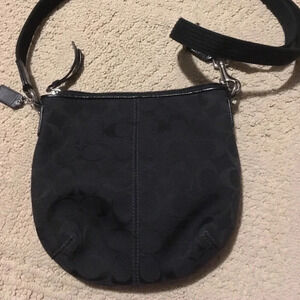 Black Coach women’s crossbody purse with adjustable strap.