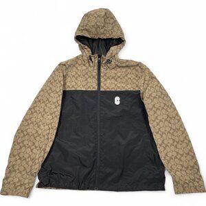 Coach Full Zip Windbreaker Hooded Jacket Logo Print Men's XL