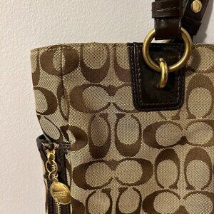 Zip top closure, 2 leather shoulder straps are a little worn (pictured)